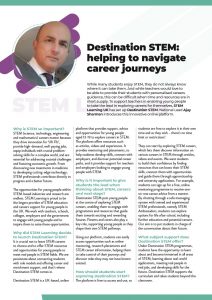 While many students enjoy STEM, they do not always know where it can take them. And while teachers would love to be able to provide their students with personalised careers guidance, this can be difficult when time and resources are in short supply. To support teachers in enabling young people to take the lead in exploring careers for themselves, STEM Learning UK has set up Destination STEM. National Lead Ajay Sharman introduces this innovative online platform.